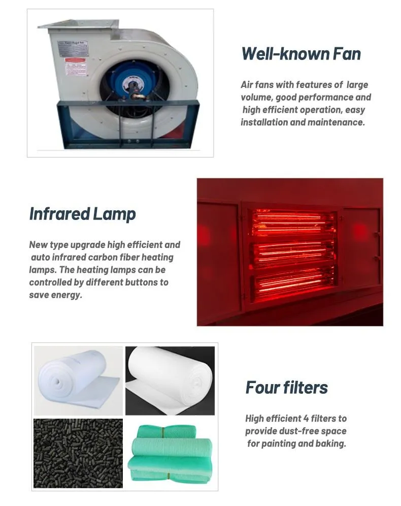 Efekt náteru je dobrý: uhlíkové vlákno a elektrická vykurovacia trubica v infračervenej oblasti sú ohrievané vlastným diaľkovým infračerveným žiarením, aby sa zabránilo sekundárnemu znečisteniu povrchu laku cirkuláciou vzduchu, aby bol povrch laku čistejší a zlepšila sa kvalita laku. .